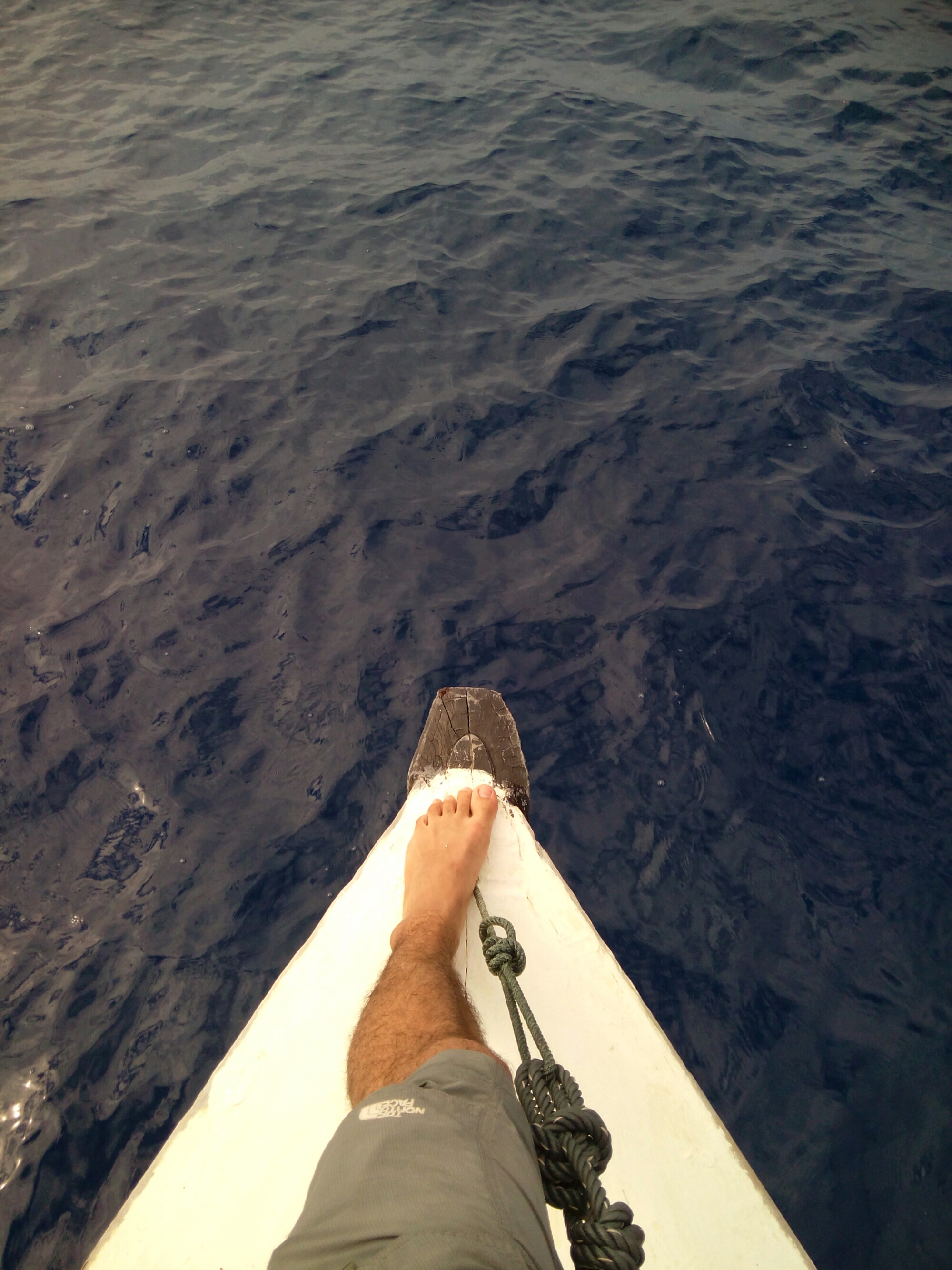 After 1h repairing the batteries it departs. The sunset on the heavily rocketing sea is nice. Fried fish for dinner and sleep at 8pm, hard wood, shaking boat and diesel exhaust, good night!
