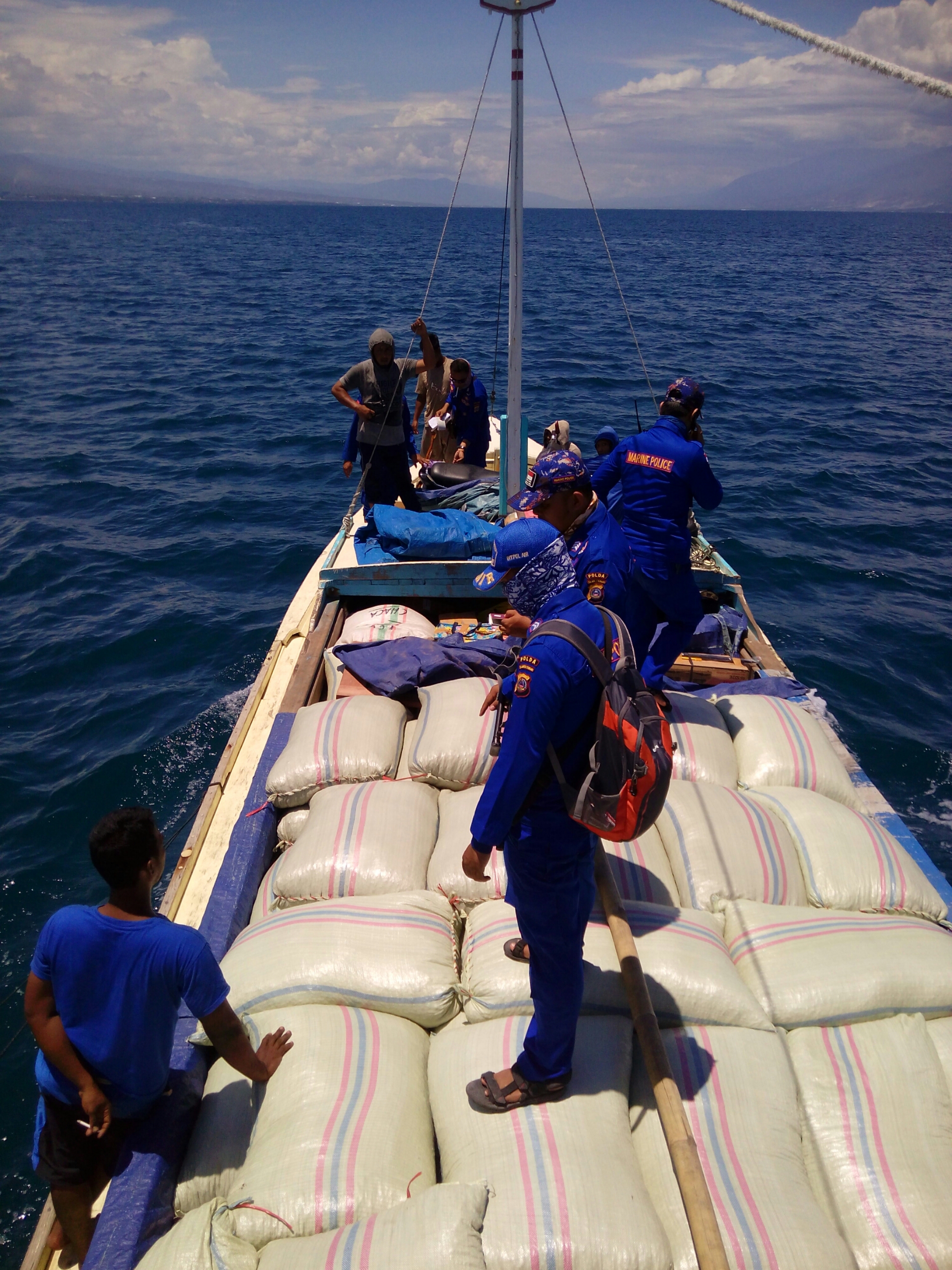 After few hours of enjoying the striking mountain sea scenery and entering, Palu bay surrounded by long mountains welcomes me. Also the marine police welcomes me and the boat, boarding us with a zodiac. After 20h in my ride and 250km I’m taken by the police :D, great! I’m received by all at the Wasi harbour like a movie star.